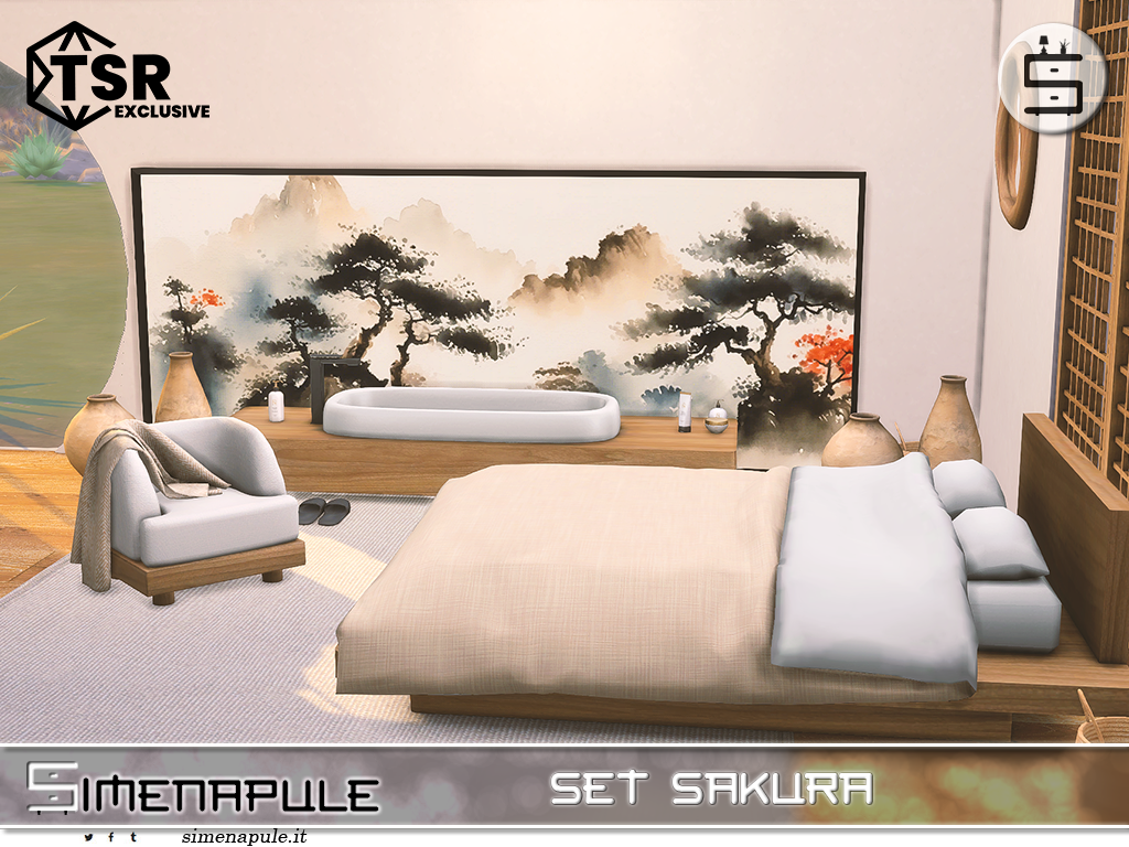 A bedroom designed in a Japanese-inspired minimalist style, Wabi-sabi, featuring natural wood elements, neutral tones, and a