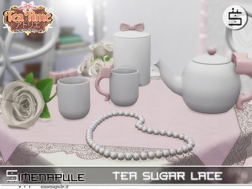 Tea Sugar Lace is an elegant Sims 4 set inspired by the charm of a cozy atelier, featuring a refined tea table, sculpted chairs, lace details, and delicate decor to create a romantic tea corner.