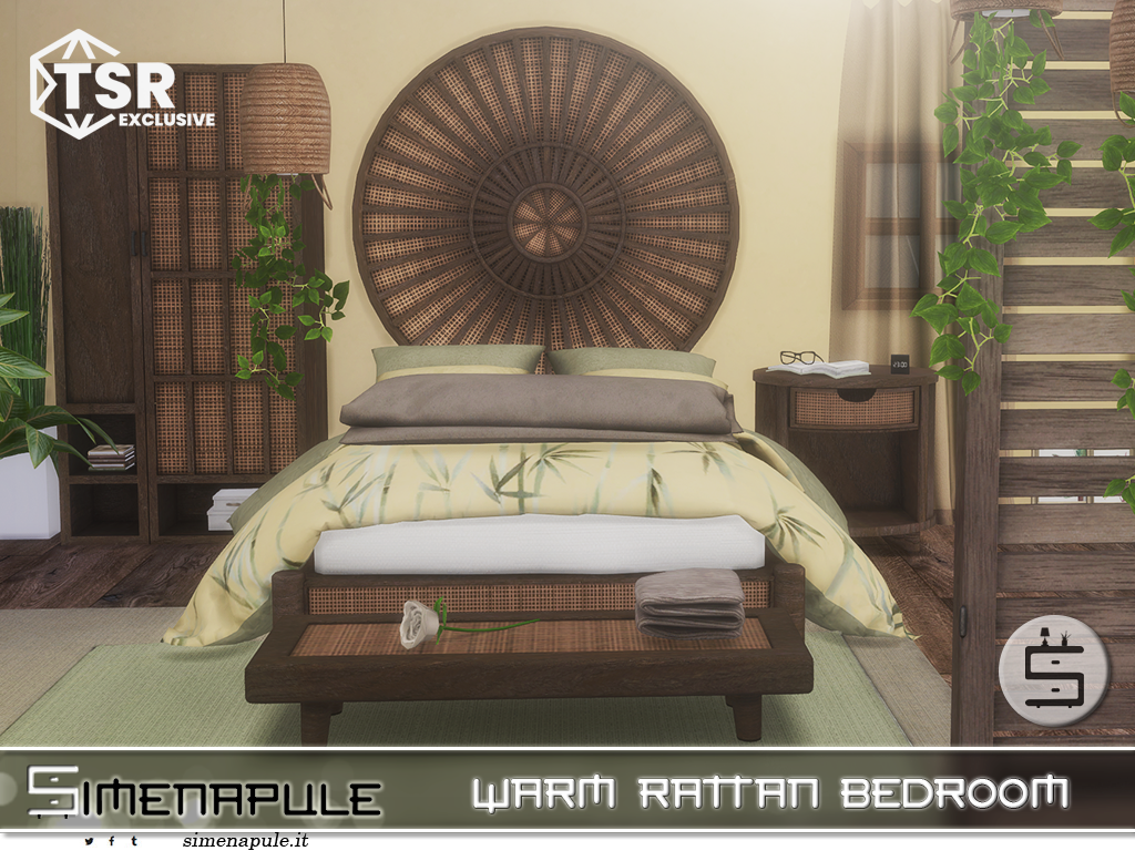 Warm Rattan Bedroom is a cozy, nature-inspired set for The Sims 4.