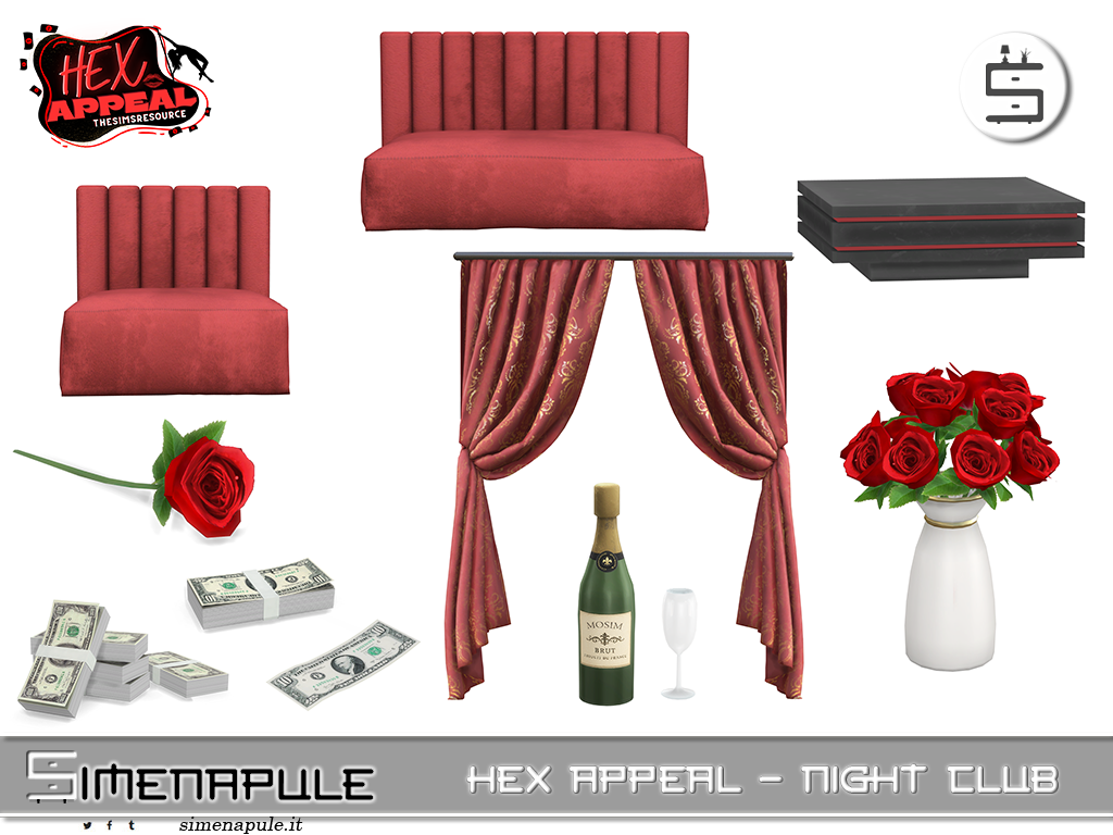 Bring sultry energy to your Sims nights with velvet booths and glowing neon signs. This set oozes bold, provocative vibes , perfect for bars, strip clubs, or steamy photo sessions.