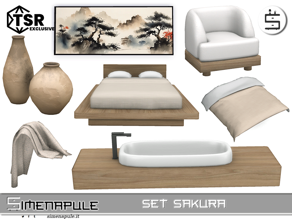 A bedroom designed in a Japanese-inspired minimalist style, Wabi-sabi, featuring natural wood elements, neutral tones, and a